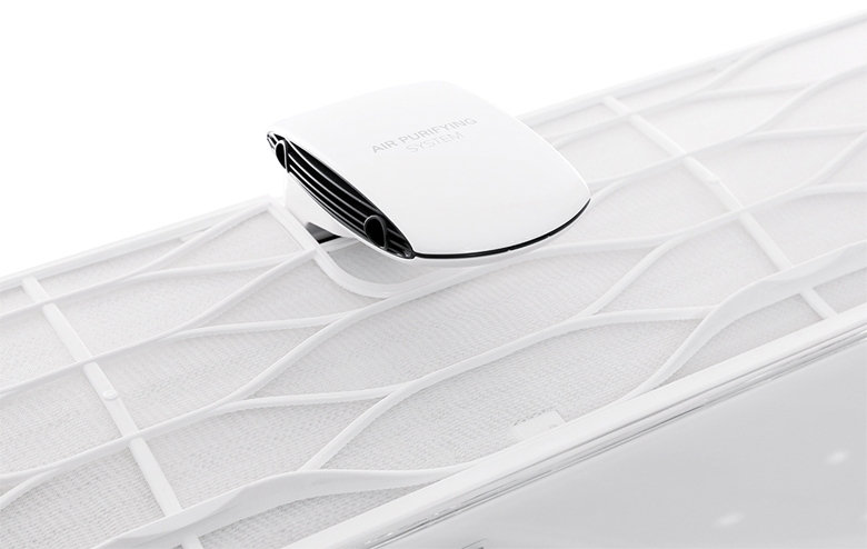 Khi bộ cảm biến bụi phát hiện bụi mịn trong không khí thì bộ phát ion được gắn ở phần phía trên của máy điều hòa sẽ tiến hành thực hiện phát ion giữ chặt bụi bẩn, các tác nhân ô nhiễm và loại bỏ chúng thông qua màng lọc.